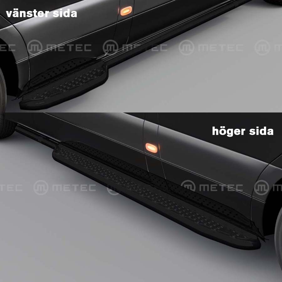 Svarta sidosteg TOUR kort MAN TGE/ VW Crafter 2017+ är en produkt där vi har kombinerat det bästa av två världar. Snygga sidorör och funktionella sidosteg av rostfritt stål i en och samma produkt. Du får ett kort fotsteg på förarsidan och ett längre på andra sidan som räcker till både passagerardörren och skjutdörren.